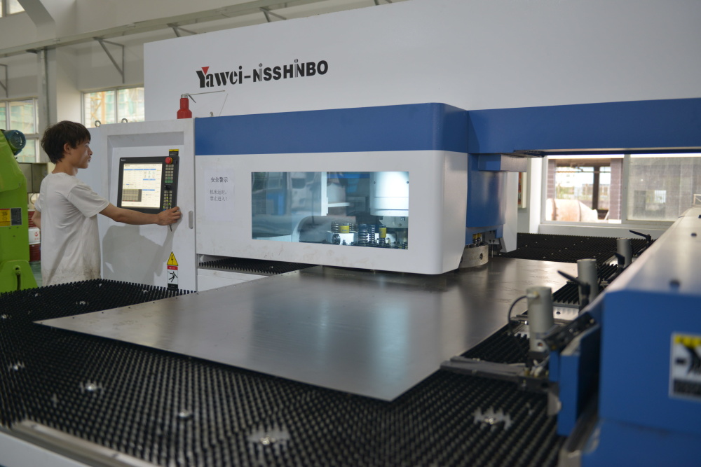 公司厂房面积2万多平方米,一期投资2000万元,拥有高精密度的数控激光切割机、全伺服数控转塔冲床、电液同步数控折弯机、压铆机、焊接机器人等专用设备及先进检测设备,建立自动化设备柔性生产线。